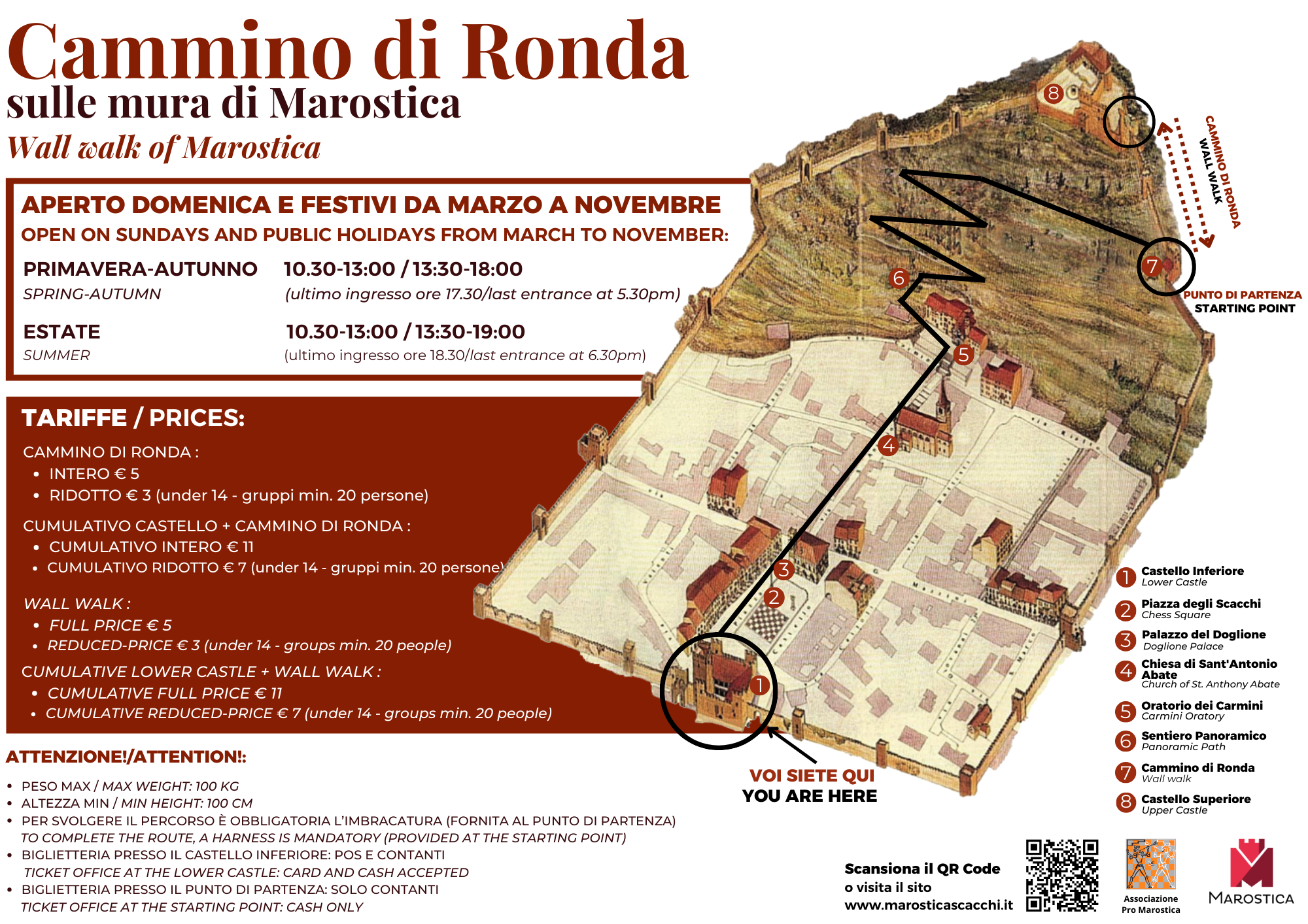 • Cumulativo Cammino di Ronda + Castello Inferiore: €11,00 (intero); €7,00 (minori di 14 anni)